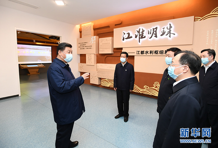 11月12日至13日,中共中央总书记、国家主席、中央军委主席习近平在江苏考察。这是13日下午,习近平在扬州市江都水利枢纽展览馆参观,了解水利枢纽工程发展建设历程和运营情况。 新华社记者 谢环驰 摄