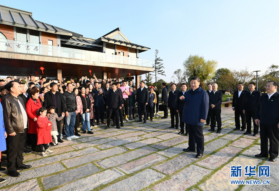 11月12日至13日,中共中央总书记、国家主席、中央军委主席习近平在江苏考察。这是13日下午,习近平在扬州市运河三湾生态文化公园考察时,同市民群众亲切交流。新华社记者 谢环驰 摄