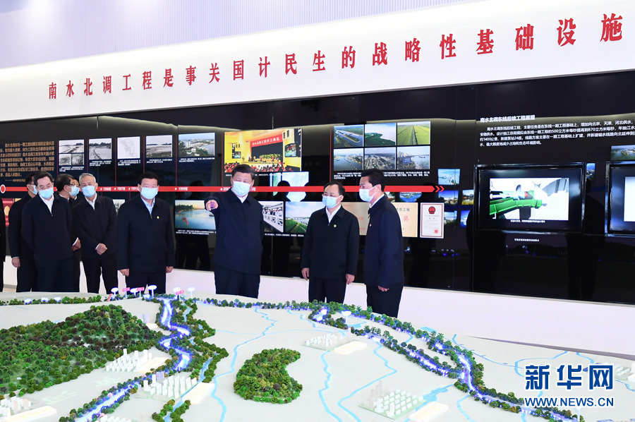 11月12日至13日,中共中央总书记、国家主席、中央军委主席习近平在江苏考察。这是13日下午,习近平在扬州市江都水利枢纽展厅,了解南水北调东线工程规划建设和运行情况。新华社记者 谢环驰 摄