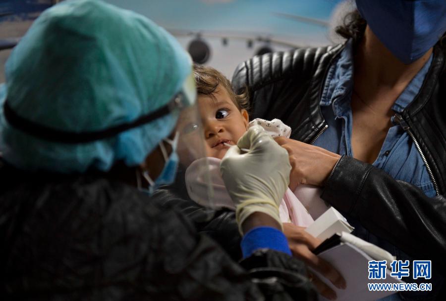 11月15日,古巴首都哈瓦那何塞·马蒂国际机场工作人员(左)为一名儿童采样以便进行核酸检测。古巴首都哈瓦那何塞·马蒂国际机场15日正式恢复国际商业航班运营。古巴政府规定,所有人员入境时须测量体温并接受核酸检测,入境5天后接受第二次核酸检测,在两次检测结果确认前活动将受限。新华社发(亚米莱·拉赫摄)
