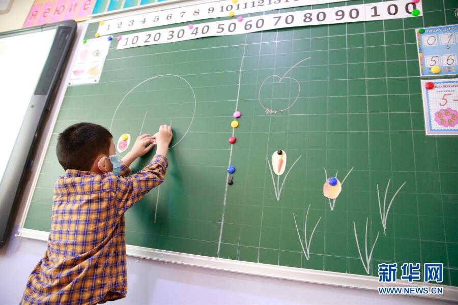 11月16日,在吉尔吉斯斯坦首都比什凯克,一名小学生佩戴口罩上课。新华社发(罗曼摄)
