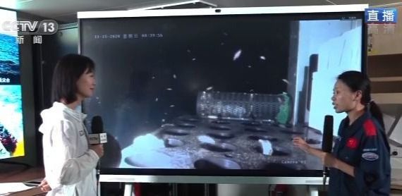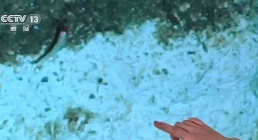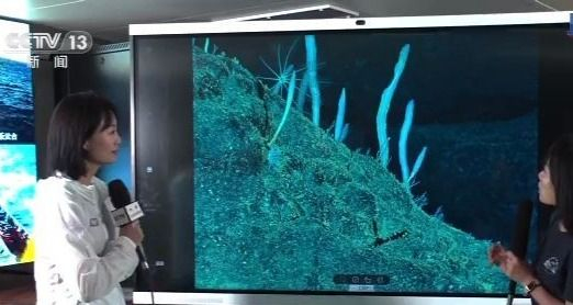 今天在现场展示的画面是“深海勇士”号前两次下潜带回来的。中科院深海所杜梦然介绍,“深海勇士”在马里亚纳海沟弧前区4000米深度的区域下潜,该区域底部大部分都是黑色的积岩,但是这次很意外,在这样的深度发现有一片白色的碳酸岩。