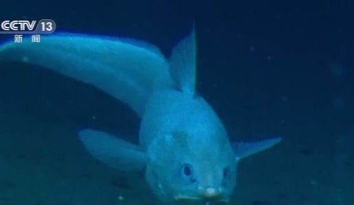 研究人员介绍这个鱼叫鼠尾鳕,是非常活泼的鱼,在下潜过程中常能看到。