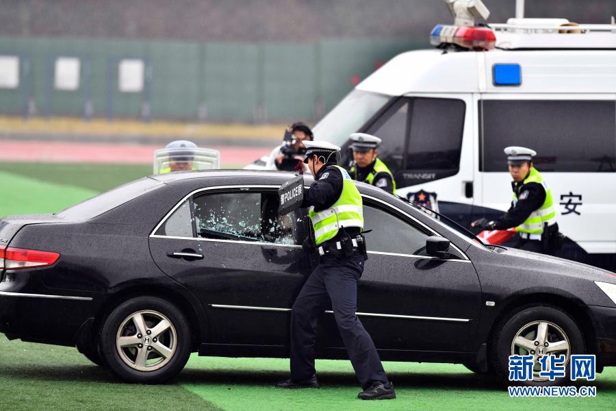 11月17日,济南市公安局在济南特警支队训练场举行砺剑2020济南市公安机关全警实战大练兵综合演练。新华社记者 郭绪雷 摄