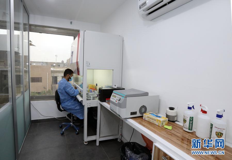 11月17日,在伊拉克巴格达一家实验室内,工作人员进行新冠样本检测。新华社发