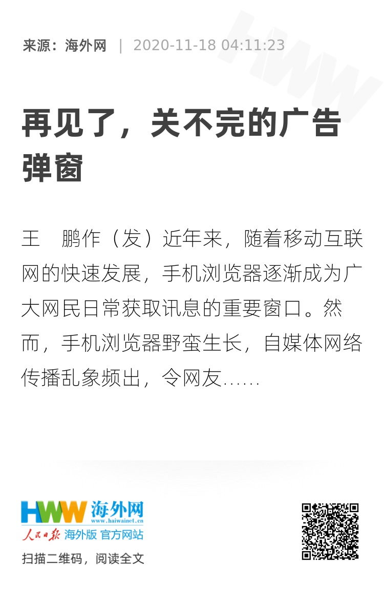 业内专家认为,手机浏览器是移动互联网端的内容聚合平台,内容是不同浏览器竞争的关键。此次整改将推动手机浏览器打造健康内容生态,优化网络平台信息传播秩序,让用户获取信息更便捷,也让网络环境更清净。(记者 高乔)