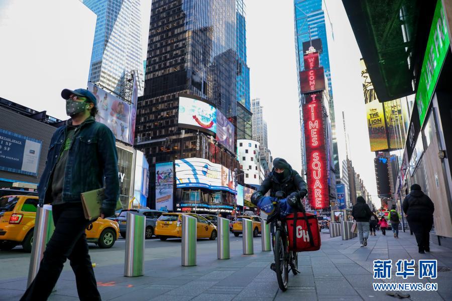 11月18日,行人走在美国纽约时报广场。美国约翰斯·霍普金斯大学18日发布的新冠疫情最新统计数据显示,截至美国东部时间18日17时25分(北京时间19日6时25分),美国累计新冠死亡病例超过25万例,达250029例,累计确诊病例11485176例。新华社记者 王迎 摄