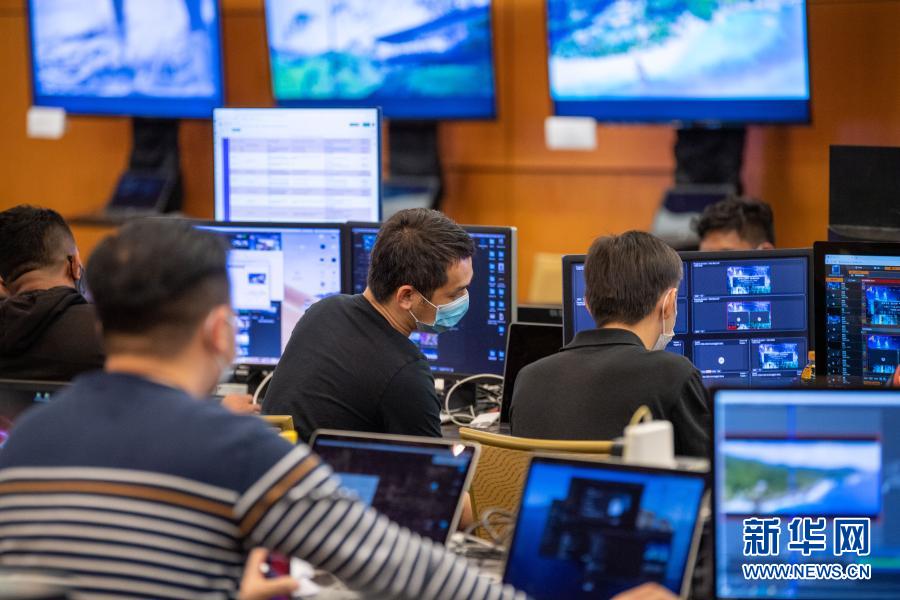 11月18日,在马来西亚吉隆坡会议中心,工作人员在亚太经合组织工商领导人对话会指挥中心忙碌。2020年亚太经合组织(APEC)工商领导人对话会19日以线上形式举行,对话会指挥中心发挥了技术保障的“中枢”作用,确保了线上对话会顺利举行。马来西亚是2020年APEC会议东道主。新华社记者 朱炜 摄