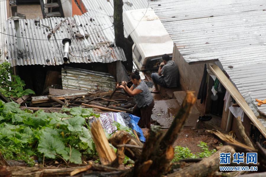 11月19日,在洪都拉斯特古西加尔巴,当地民众清理受灾现场。飓风“约塔”登陆中美洲以来,在多国引发灾害,截至当地时间19日晚已造成至少45人死亡。新华社发(拉斐尔·奥乔亚摄)