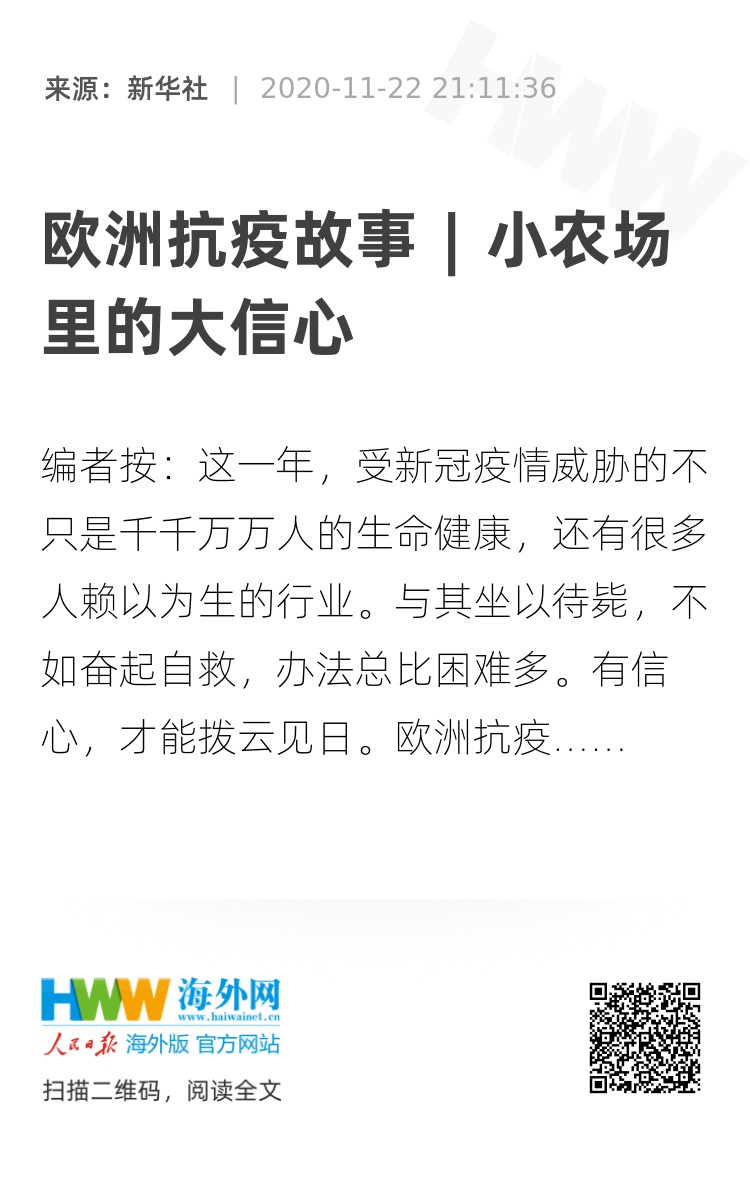 编者按:这一年,受新冠疫情威胁的不只是千千万万人的生命健康,还有很多人赖以为生的行业。与其坐以待毙,不如奋起自救,办法总比困难多。有信心,才能拨云见日。欧洲抗疫故事第六篇,关于一个普通农场主困中求变的故事,敬请查收。