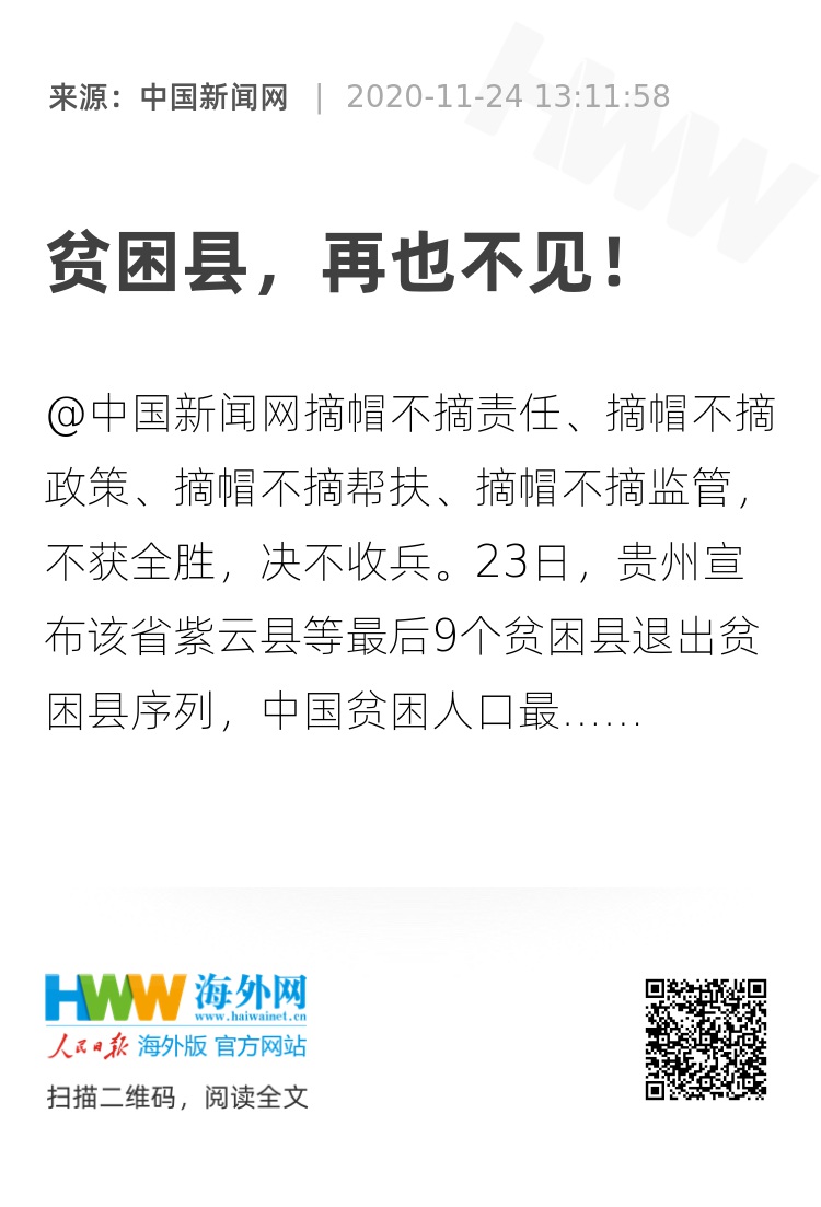 23日,贵州宣布该省紫云县等最后9个贫困县退出贫困县序列,中国贫困人口最多的省份实现了贫困县“清零”。而随着贵州宣布贫困县全摘帽,至此,国务院扶贫办确定的全国832个贫困县已经全部脱贫摘帽。