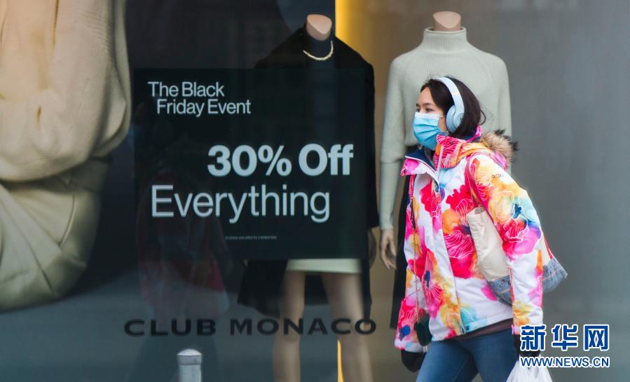 11月24日,在加拿大多伦多,一名戴口罩的女子从一家服饰店前走过。新华社发(邹峥摄)