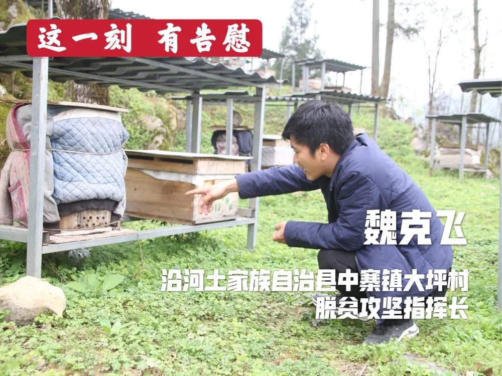 大学毕业后,魏克飞已先后驻过多个村。如今,他黝黑的肤色与普通村民看起来无异。大坪村原第一书记文伟红是他的战友,2019年7月在村里查看产业时不幸触电身亡,年仅45岁。他抓的蜜蜂养殖产业,生前还没见到成效。
