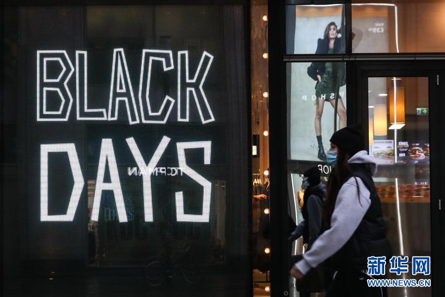 11月26日,在德国首都柏林,一名行人走过一家商店的广告显示屏。德国联邦和各州政府25日晚达成协议,延长从11月初开始实施的新冠防疫限制措施至12月20日,并进一步收紧私人聚会人数限制、戴口罩等相关规定。新华社记者 单宇琦 摄