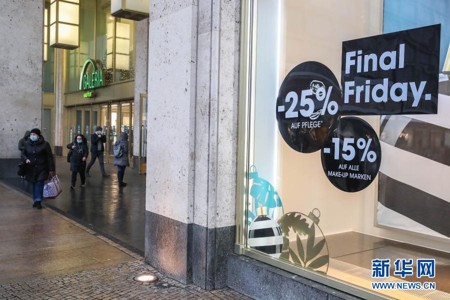 11月26日,在德国首都柏林,人们进出一家购物中心。德国联邦和各州政府25日晚达成协议,延长从11月初开始实施的新冠防疫限制措施至12月20日,并进一步收紧私人聚会人数限制、戴口罩等相关规定。新华社记者 单宇琦 摄