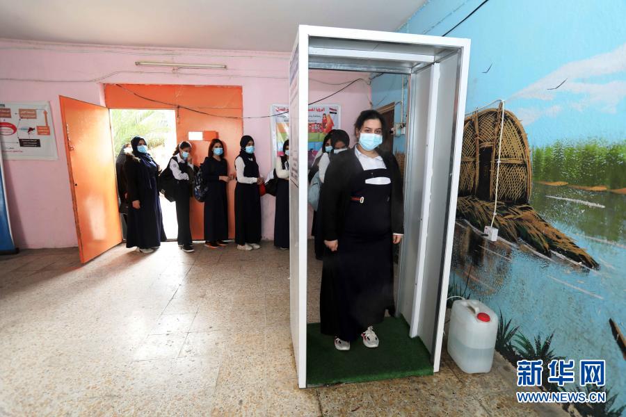 11月29日,在伊拉克巴格达,学生戴着口罩上课。伊拉克卫生部29日发布的新冠疫情数据显示,该国当天新增确诊病例1614例,累计确诊550435例。新华社发