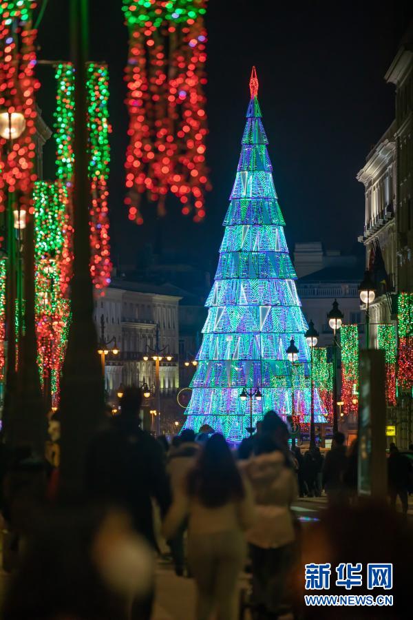 圣诞节将至,西班牙马德里市内的街道上悬挂起圣诞彩灯。新华社记者孟鼎博摄