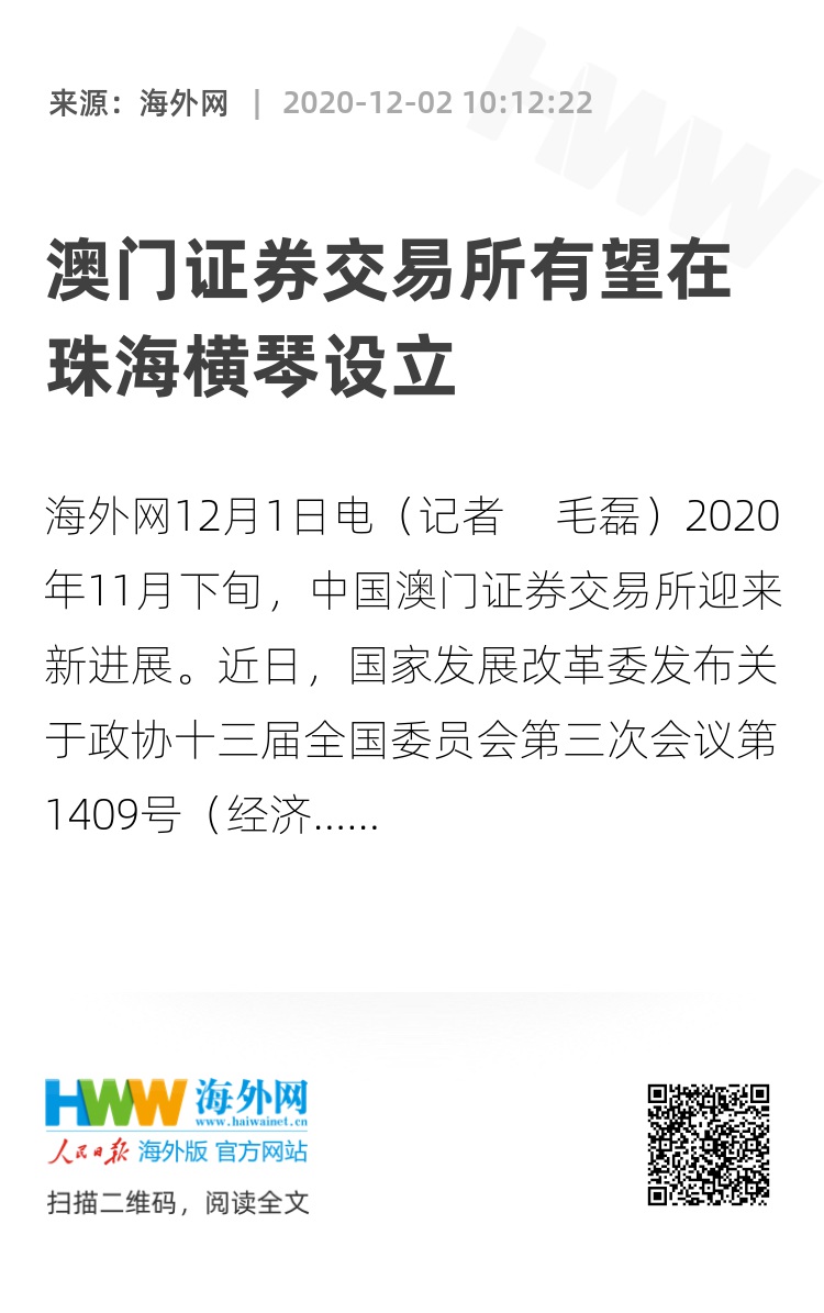 海外网12月1日电(记者 毛磊)2020年11月下旬,中国澳门证券交易所迎来新进展。