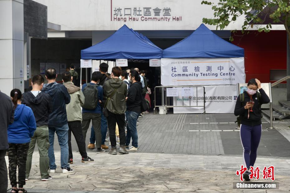 11月30日,香港坑口社区会堂检测中心正式启用,为市民提供鼻腔和咽喉合并拭子样本采集和新冠肺炎病毒检测服务,不少市民排队等候检测。李志华 摄