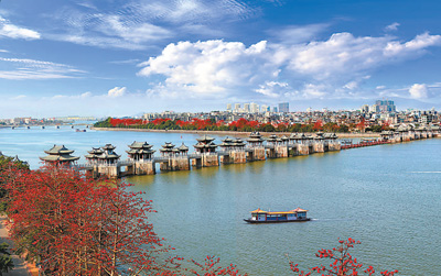 “潮之州,大海在其南。”登上广东潮州古城城墙,韩江、韩山立于左,古老的广济桥横卧江面;骑楼老城立于右,“外曲内方、四横三纵”的历史格局依然如故,绵延着历史文脉和城市记忆。