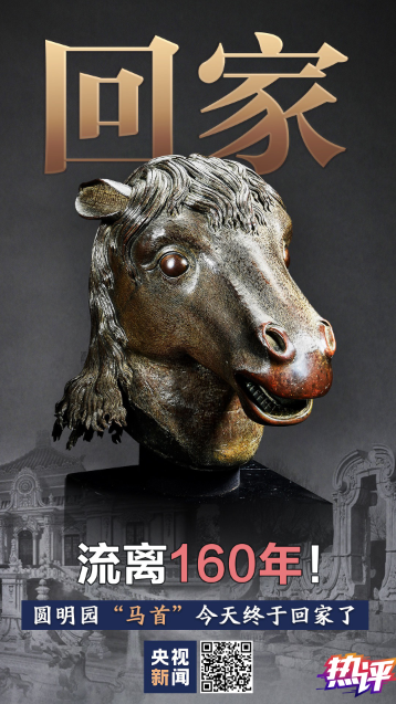 马首铜像回归原属地,为其百年回归之路画上了一个完美的句号。但十二兽首中还有龙首、蛇首、羊首、鸡首、狗首5尊铜像下落不明,它们何时能团聚,牵动人心。流失文物的追索是公认的世界难题,不仅牵涉极其复杂的法律难题,还涉及民族情感与国际关系,但无论如何,中国人都不会停止找寻。“十二生肖”每一件兽首的回归都能激起我们对历史的反思,此次马首回归圆明园,就像一条情感的纽带,再一次将全体国人的心连在一起,大家内心盼望的,当然不仅仅是十二兽首的圆满。