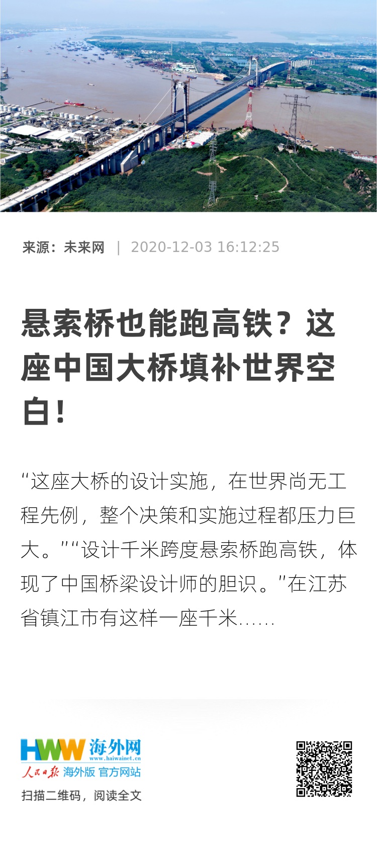 “设计千米跨度悬索桥跑高铁,体现了中国桥梁设计师的胆识。”