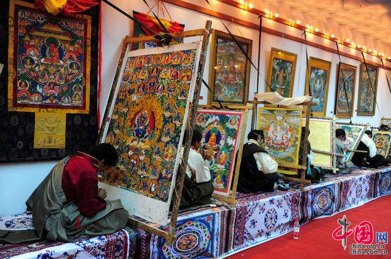 青海同仁热贡画院免费培训贫困牧民唐卡绘画技艺