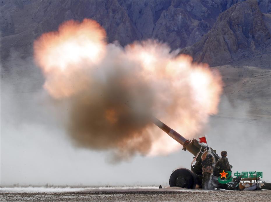 近日,新疆军区某部在海拔4500多米的雪域高原组织实弹射击考核,检验官兵实战化训练水平。炮兵操作火炮实弹射击场景震撼,火力全开。翟洋洋 摄 图片来源:中国军网