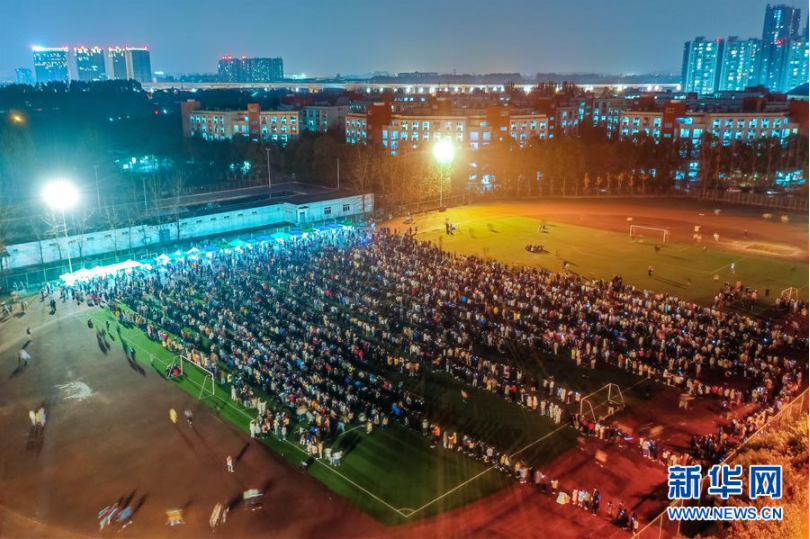12月11日晚,在位于四川成都市郫都区的西华大学本部,学生在操场上进行核酸检测(无人机照片)。 当日,成都市郫都区新型冠状病毒肺炎疫情防控指挥部发布通告,从2020年12月11日18点00分开始,全面开展郫都区全员新冠肺炎疫情核酸检测,确保不漏一人。检测费用由区政府承担。 新华社发