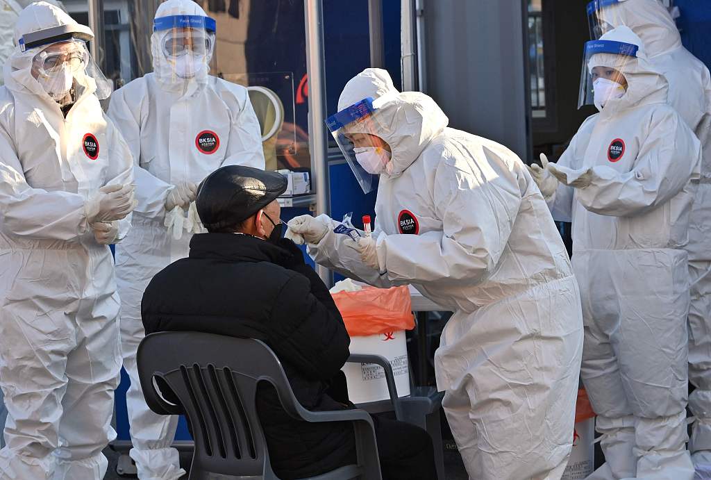 当地时间2020年12月14日,韩国首尔,民众前往临时检测点接受新冠病毒核酸检测。图片来源:人民视觉/视觉中国