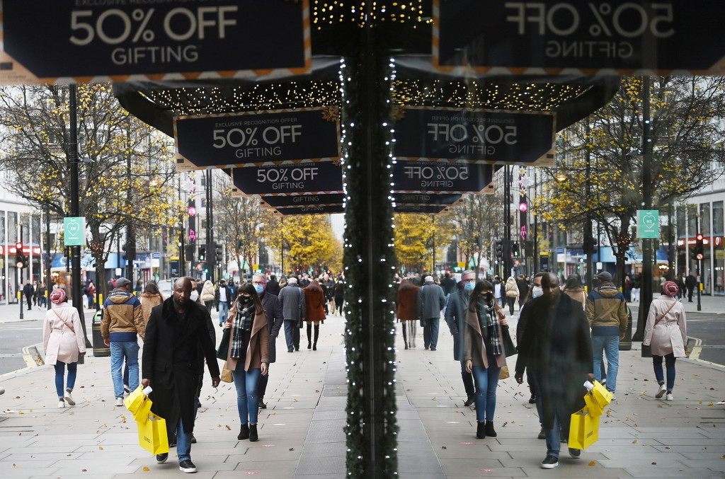 当地时间2020年12月12日,英国伦敦,圣诞临近,牛津街迎来购物高潮。图源:东方IC