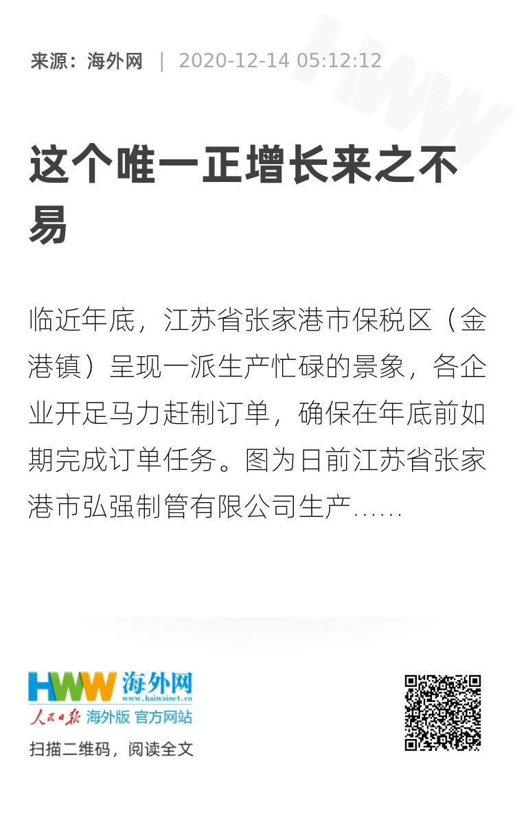 这个唯一“正增长”,对于14亿人口的大国殊为不易,其背后是中国经济的强大韧性和旺盛活力。而在全球疫情仍在蔓延的背景下,中国经济率先复苏更显难得,将为世界经济复苏提供支持,提振全球战胜疫情的信心。