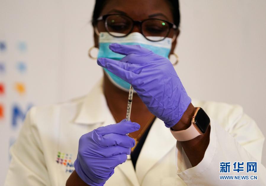 12月14日,在美国纽约长岛犹太医疗中心,一名医护人员为新冠疫苗接种作准备。美国14日启动新冠疫苗接种,首批接种人群为医护人员和生活在养老院等长期护理机构的群体。当天上午,纽约长岛犹太医疗中心重症监护室护士桑德拉·琳赛最先接种了疫苗,成为纽约州首名疫苗接种者,也是全美首批疫苗接种者之一。新华社记者王迎摄