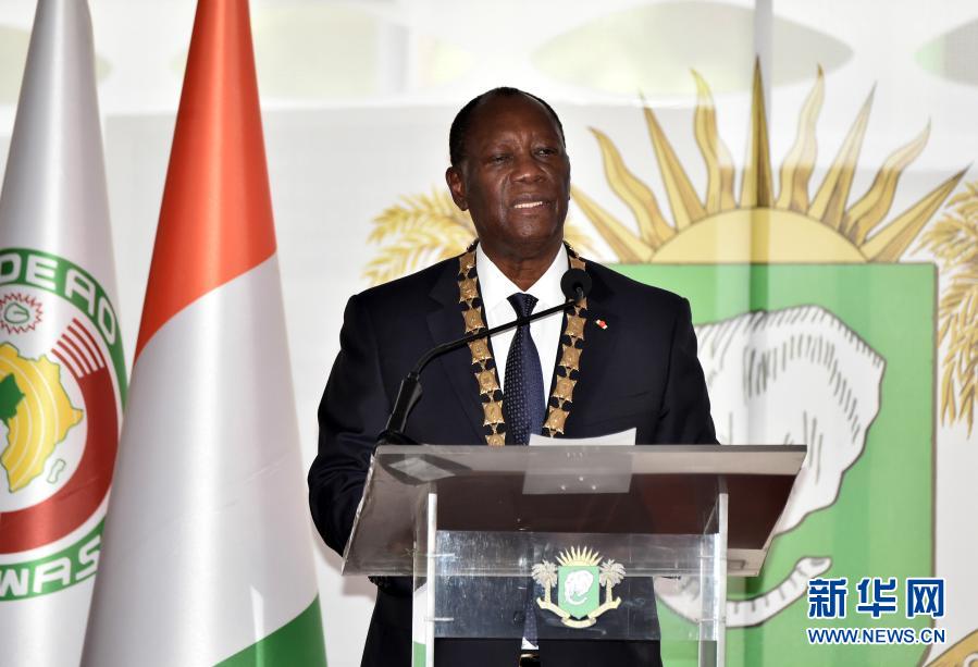 12月14日,在科特迪瓦阿比让,瓦塔拉宣誓就职后发表演讲。当日,科特迪瓦当选总统瓦塔拉在阿比让宣誓就职。新华社发(伊万·宋摄)