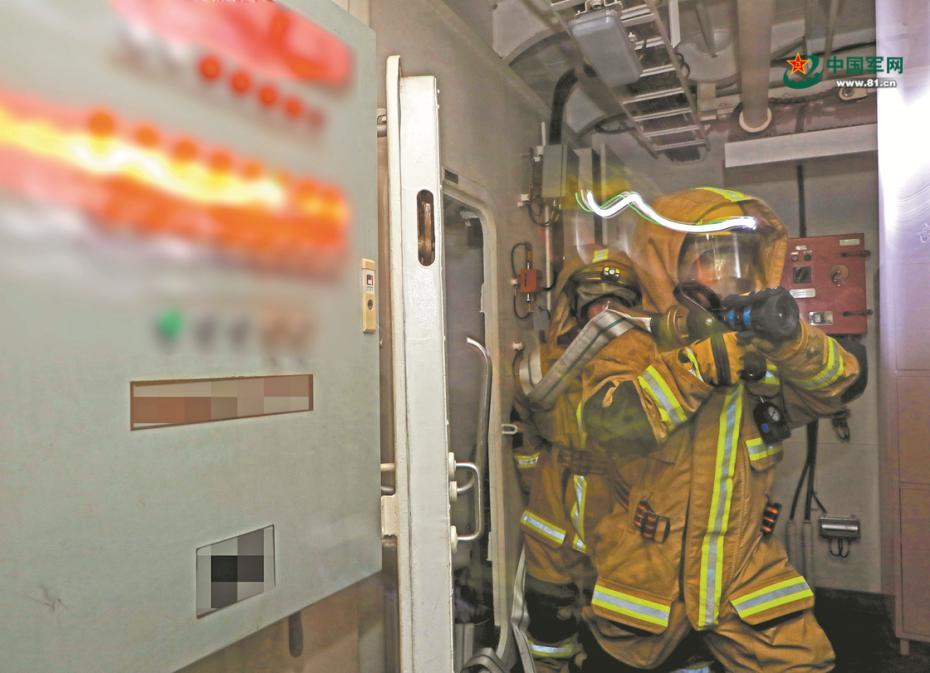 舰艇全训合格考核,既考舰艇指挥员指挥能力,又考全舰整体作战能力。此次考核以“背靠背”方式随机导调战术情节,构设危局、险局:防空反导考核设置了多批次、多类型空袭目标,检验舰艇指挥员在复杂情况下快速决策和临机指挥能力;主炮对海攻击时,重点考核舰艇占领阵位的准确性、射击过程中的战术应用等细节;综合攻防操演中,舰艇损管、装备故障、电子干扰等战场特情接踵而至,考验官兵应急处置能力……图为舰艇损管考核。张伟峰 蔡盛秋 解放军报特约记者 薛成清摄影报道