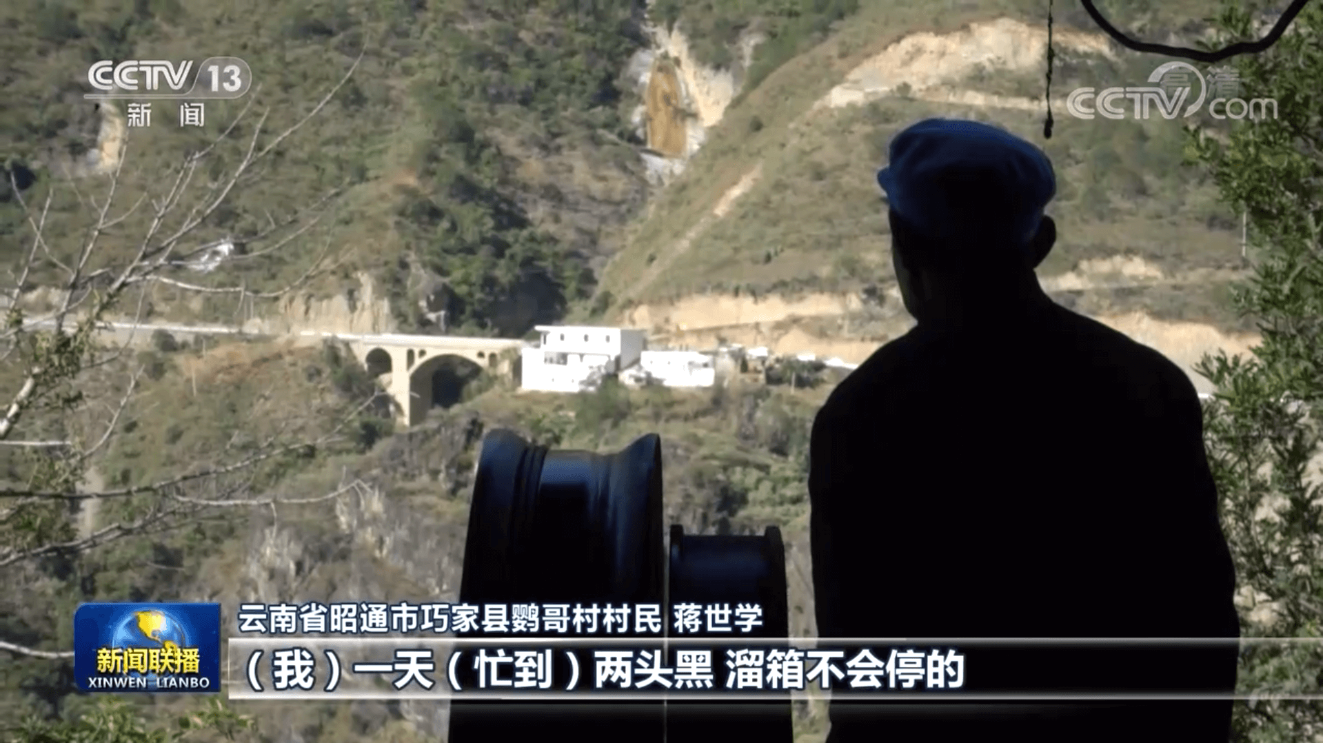 云南省昭通市巧家县鹦哥村村民 蒋世学:(我)一天(忙到)两头黑,溜箱不会停的,人多了一天拉几百人,百十趟可能会有,吃饭有时候端着在这吃。