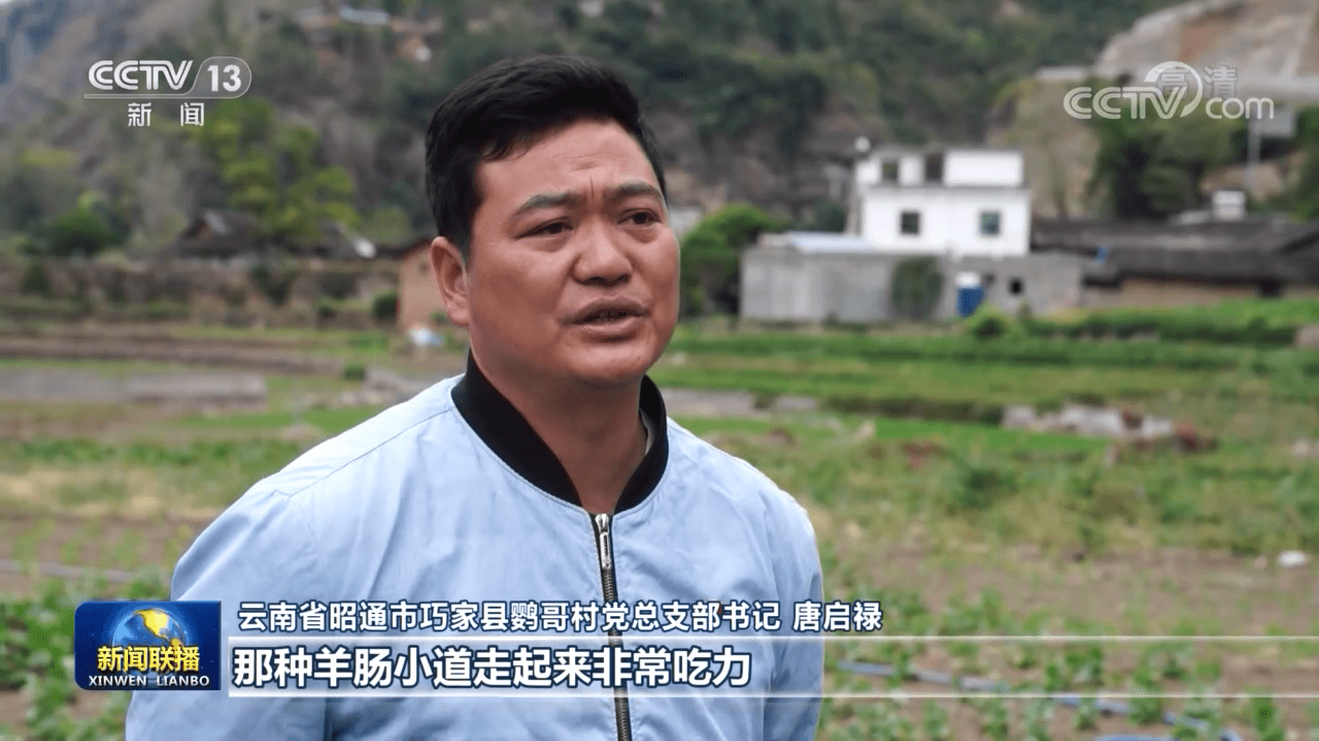 云南省昭通市巧家县鹦哥村党总支部书记 唐启禄:未通路的时候,那种羊肠小道走起来非常吃力,修房子的建筑材料人背马驮运到家,成本就翻了一番。有些人家做了三年才把房子建成。