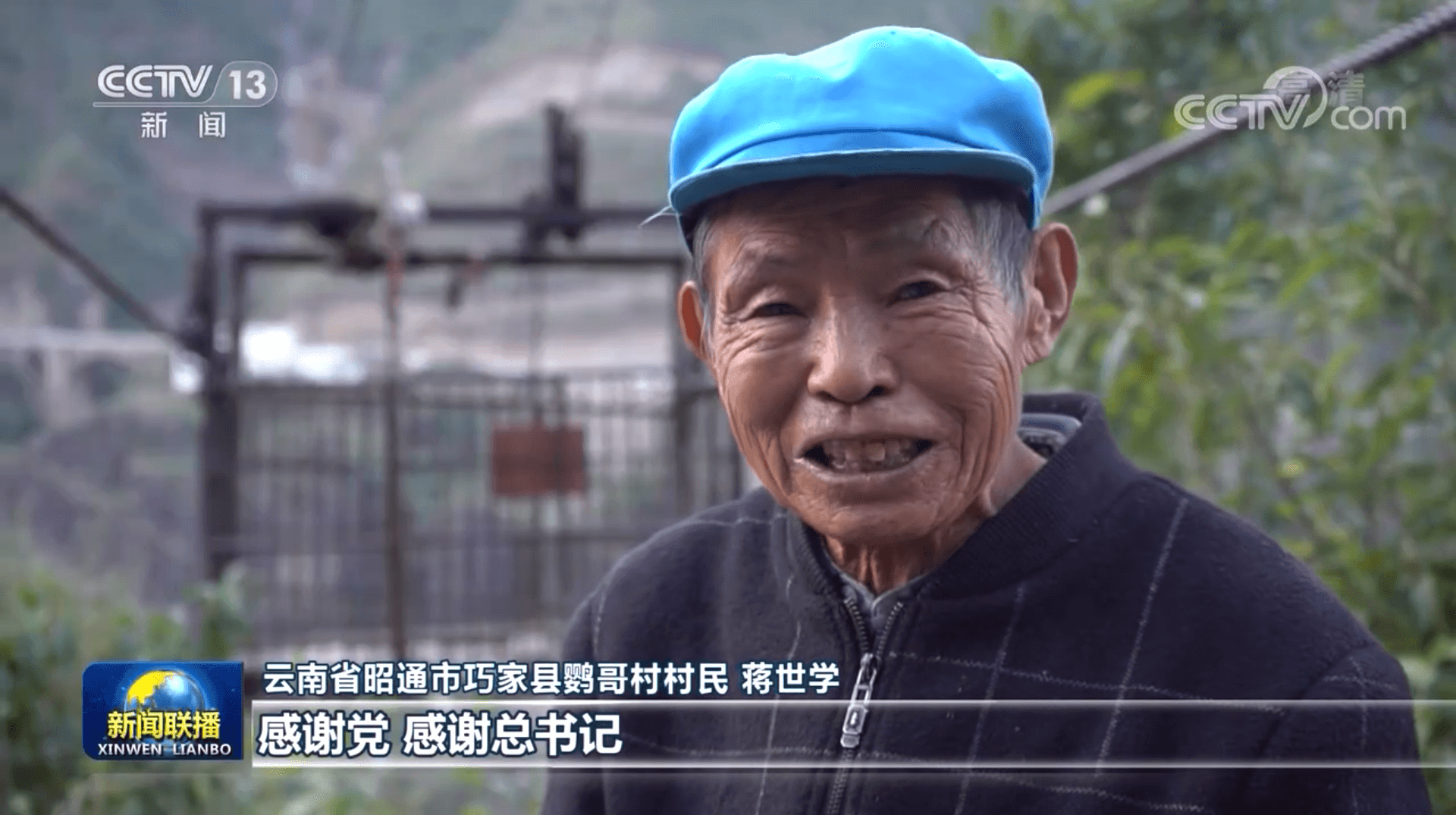 云南省昭通市巧家县鹦哥村村民 蒋世学:感谢党、感谢总书记,一心一意为人民。这些路都是中央为了人民服务(的体现),它是我们的一个最好的礼物。