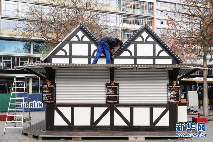 12月16日,在德国首都柏林,工作人员拆除一座“圣诞小屋”。 德国联邦与各州政府13日商定,鉴于该国新增新冠确诊病例数和死亡病例数居高不下,将从16日起进一步收紧疫情防控措施直至明年1月10日。 新华社记者 单宇琦 摄