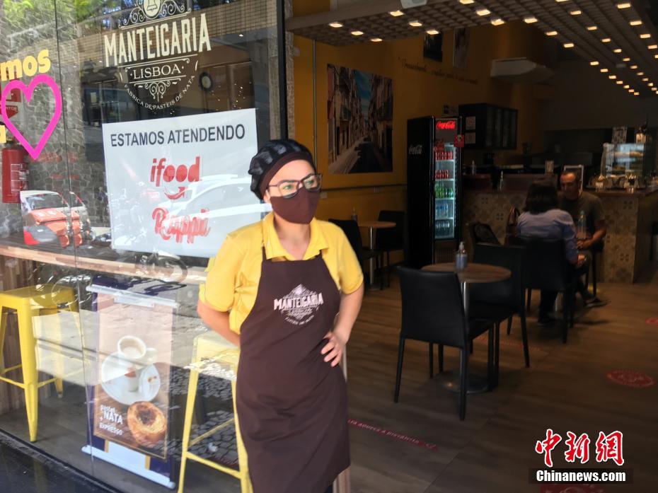 当地时间12月16日,巴西圣保罗,一名女服务员戴着口罩在一家餐馆门口迎客。据巴西卫生部公布的数据,截至16日18时,巴西累计新冠肺炎确诊病例超704万例,累计死亡超18.3万例。其中,疫情最严重的圣保罗州累计确诊病例逾134.1万例、死亡逾4.4万例。 中新社记者 莫成雄 摄