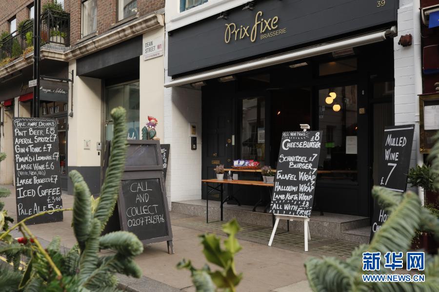 这是12月16日在英国伦敦拍摄的一家提供外卖的餐厅。新华社发(蒂姆·爱尔兰 摄)