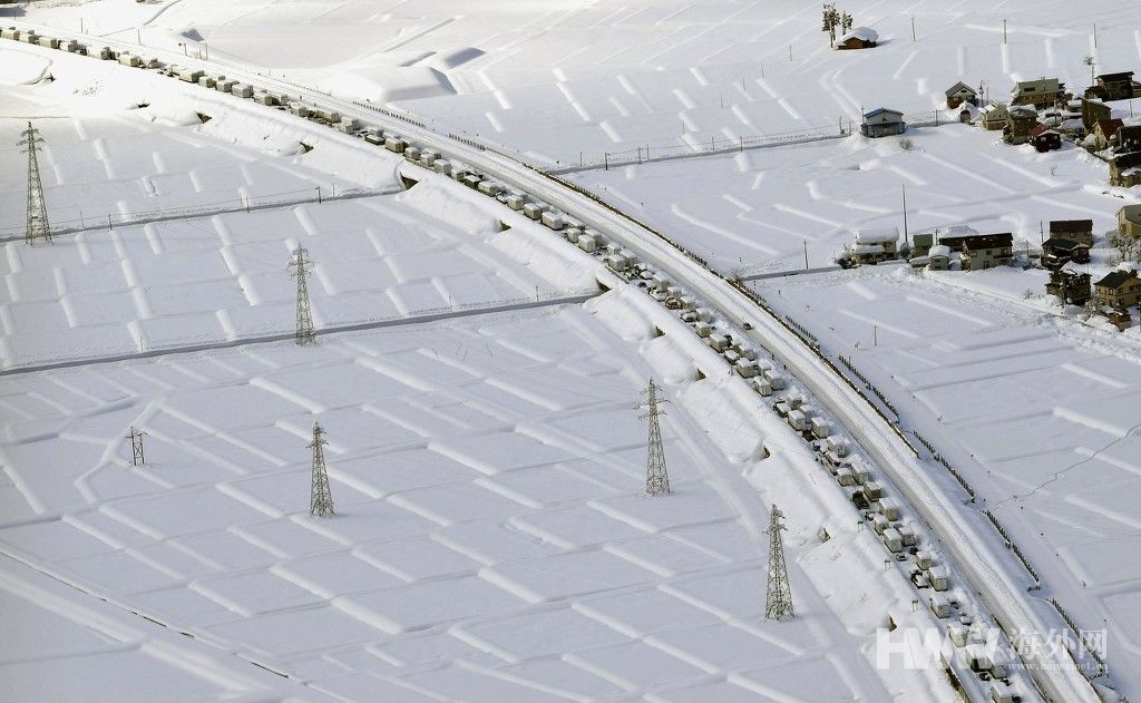 当地时间2020年12月18日,日本新潟县,大雪导致交通堵塞,车辆被困高速公路。(供图:东方IC)