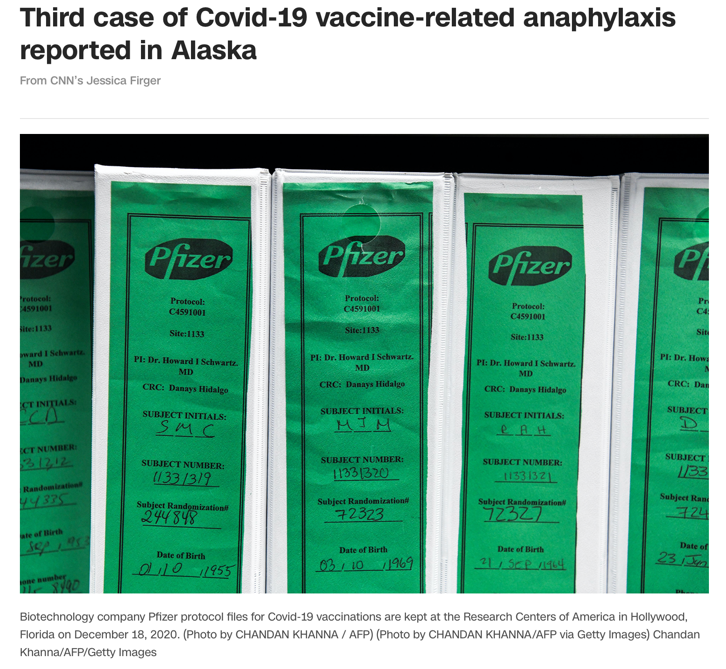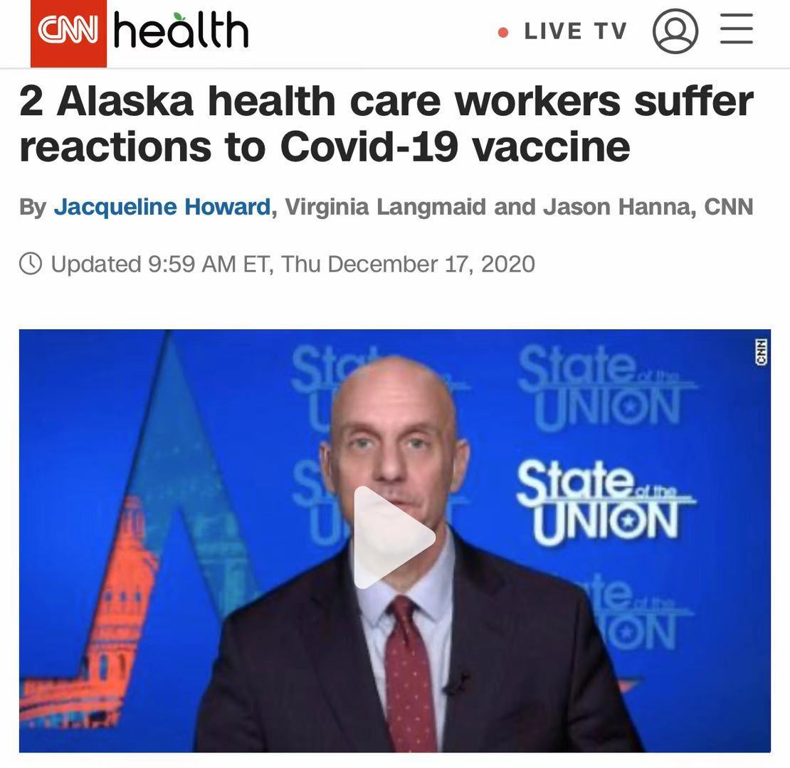 △CNN18日报道,阿拉斯加州出现第三例医护人员接种疫苗后产生不良反应案例