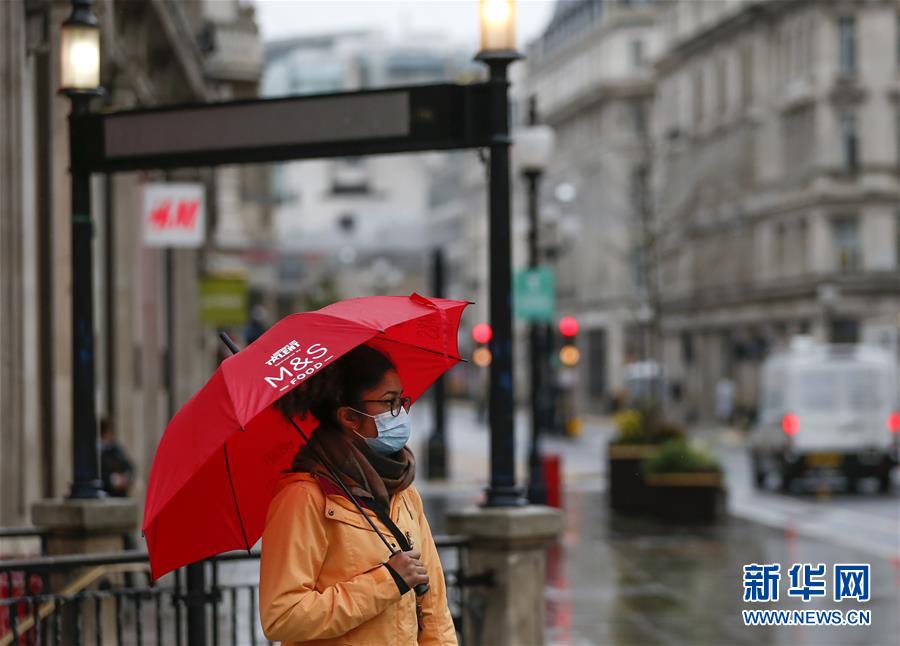 12月21日,一名戴着口罩的女子打伞站在英国伦敦街头。 圣诞节临近,英国部分地区新冠病毒传播速度加快,疫情令人担忧。英国政府正在调查这一状况是否与一种变异的新冠病毒有关,并将首都伦敦、英格兰东南部和东部部分地区的新冠疫情防控级别从第三级提升至新增加的第四级。 新华社记者 韩岩 摄