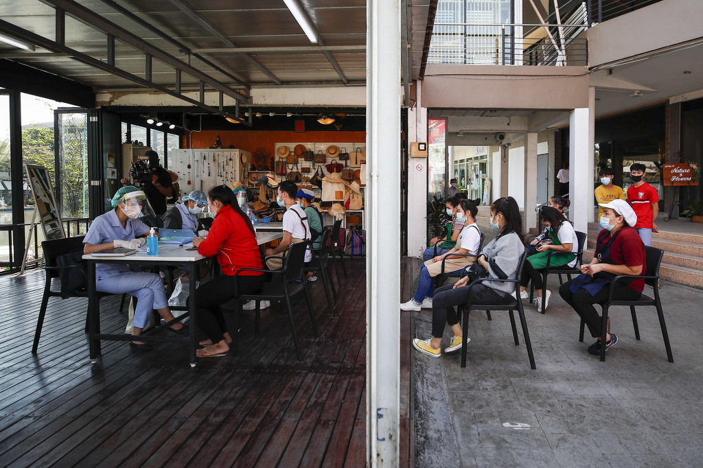 当地时间2020年12月22日,泰国曼谷, 泰国中部沙没沙空府一个大型海鲜市场暴发新冠疫情,泰国政府正组织对1万余人展开新冠病毒检测。图片来源:澎湃影像/东方IC