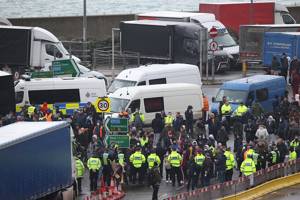 英法边境重开 多佛港公路陷入拥堵