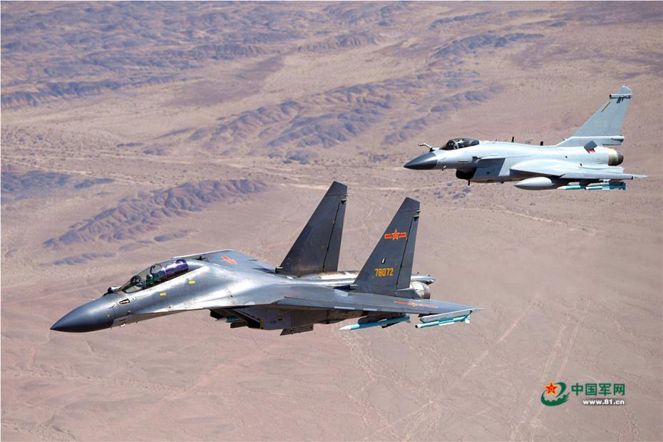 空中视角记录中国战机实兵对抗