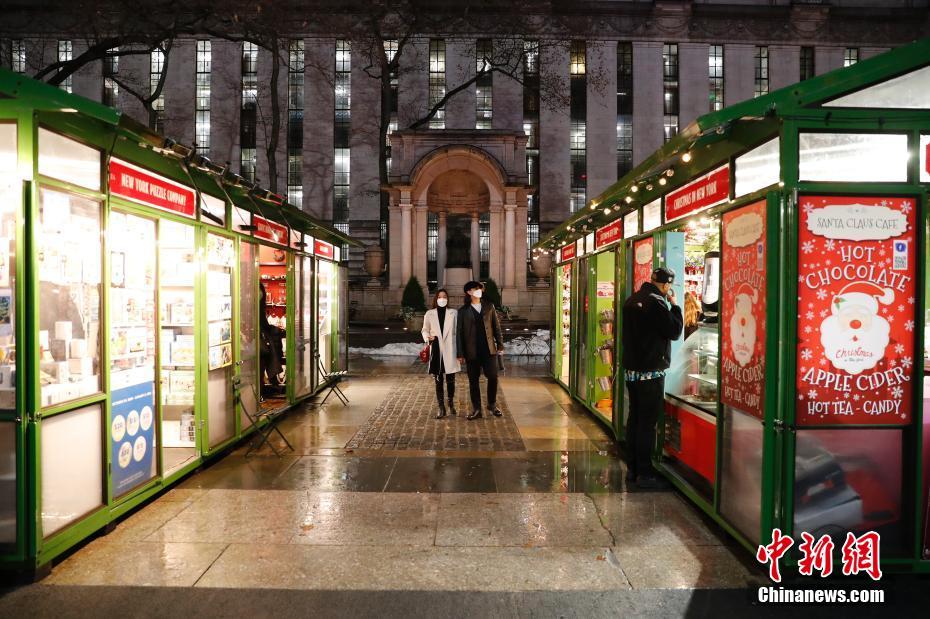 地时间12月24日,纽约在阵雨中迎来2020年平安夜。受新冠肺炎疫情影响,纽约市民在公共场所必须佩戴口罩。中新社记者 马德林 摄