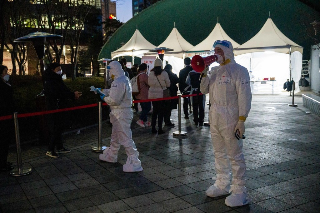 韩联社2020年12月25日消息,韩国中央防疫对策本部通报,截至当天0时,韩国新增新冠确诊病例1241例,累计确诊5.4770万例。韩国单日新增病例创下今年1月20日首次出现确诊以来的最高纪录。当天新增病例中社区感染病例1216例,境外输入性病例25例。图片来源:澎湃影像/ICphoto