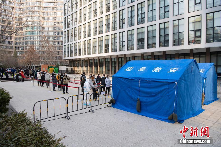 12月26日,根据新冠肺炎疫情防控要求,北京市朝阳区望京地区望京街道、东湖街道开展为期两天的社区全员核酸检测。图为望京街道一处居民小区内的采样点。 中新社记者 侯宇 摄